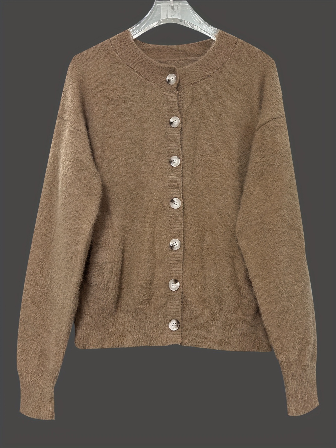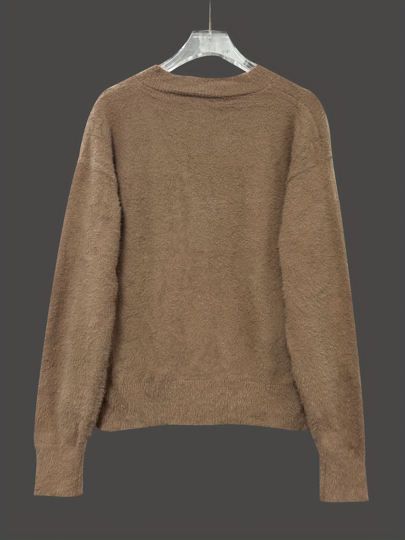 Autumn And Winter New European And American All-matching Loose Casual Solid Color Buttons Knitted Top For Women